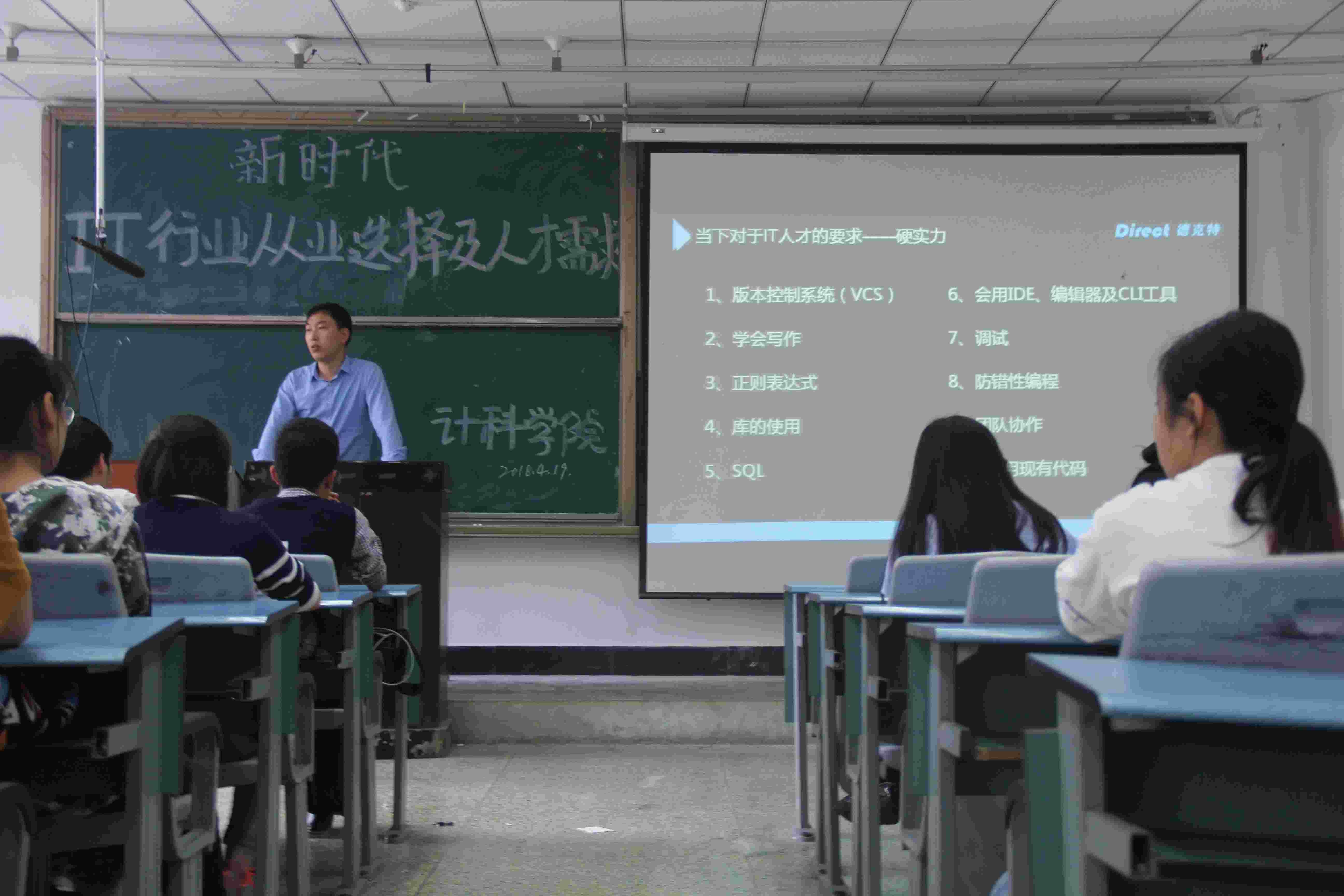4月19日下午,IT行业从业选择及人才需求讲座在行知楼114举行。本次讲座的讲师是资深软件工程师兼项目经理李桢益,计科学院副院长陈建国,辅导员谭红梅出席了本次讲座,计算机科学学院15级全体学生参加了本次讲座。