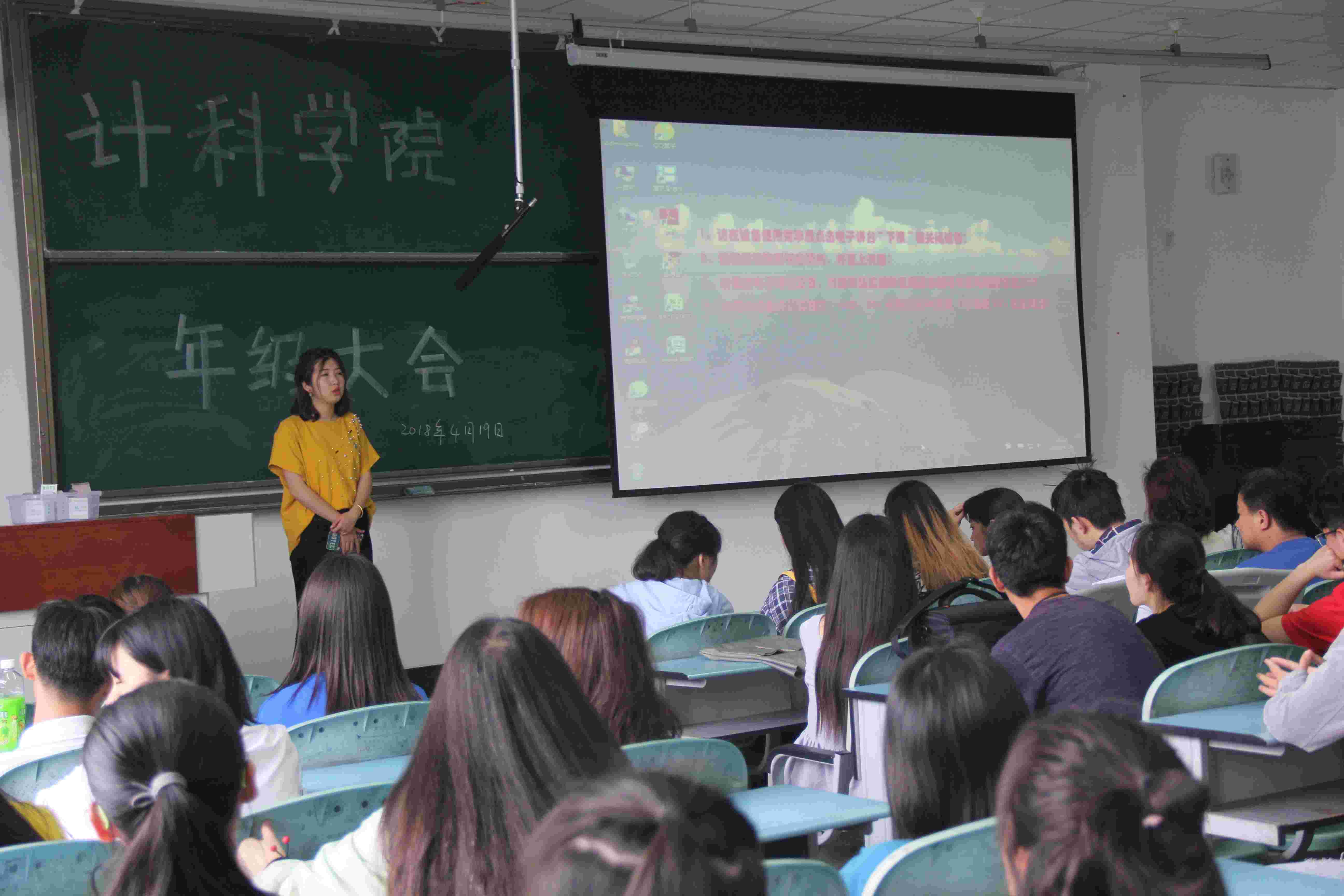 为更好地、更安全地欢度我校四十周年校庆,计科学院分别于行知楼114、225、125举行了15、16、17级年级大会。出席此次会议的有计科学院学生科科长谭红梅老师、计科学院辅导员魏玮老师,计科学院全体15、16、17级同学参加了此次大议。