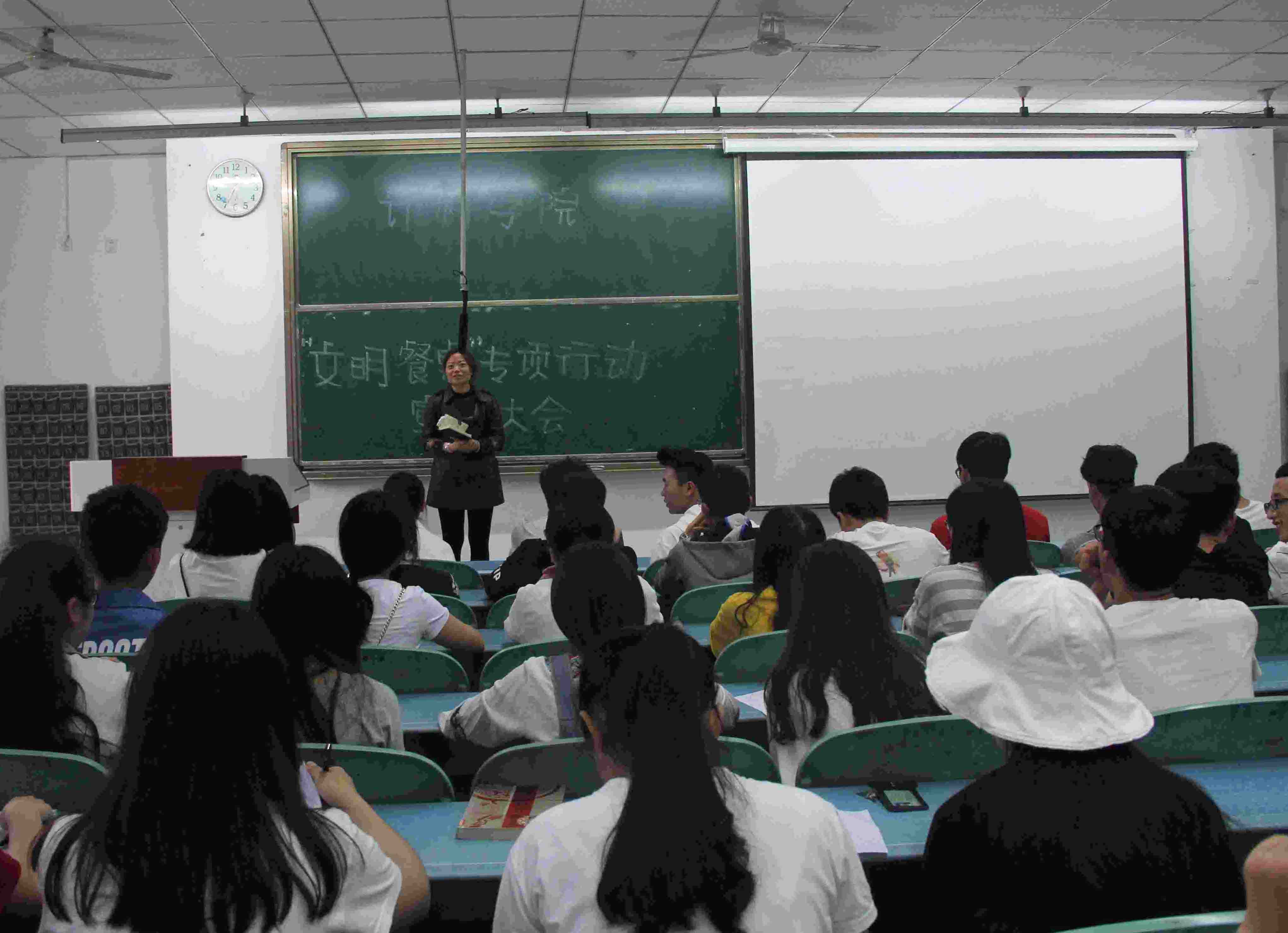 为进一步提升我院同学们的文明意识,大力普及餐桌文明知识、推广餐桌文明礼仪、倡导节约用餐行为,计科学院于2018年4月19日在行知楼125举行了“文明餐桌专项活动”。计科学院辅导员谭红梅出席并主持了此次会议,计科学院17级全体同学参加了会议。
