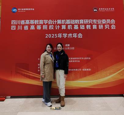 本网讯(文、图/李彬)2025年11月21日至23日,由四川省高等院校计算机基础教育研究会和四川省人工智能学院联合主办,成都职业技术学院和成都大学联合承办的“汇聚智慧,共创未来——四川省高等院校计算机基础教育研究会2025年学术会议”在成都大鼎世纪大酒店顺利召开。本次会议以“汇聚智慧,共创未来”为主题,吸引了来自全省各高校的院系领导、计算机基础教育教师、教务管理人员及企业代表等近百人参加,我校的电子信息与人工智能学院的张贵红和李彬老师参与了此次会议。
