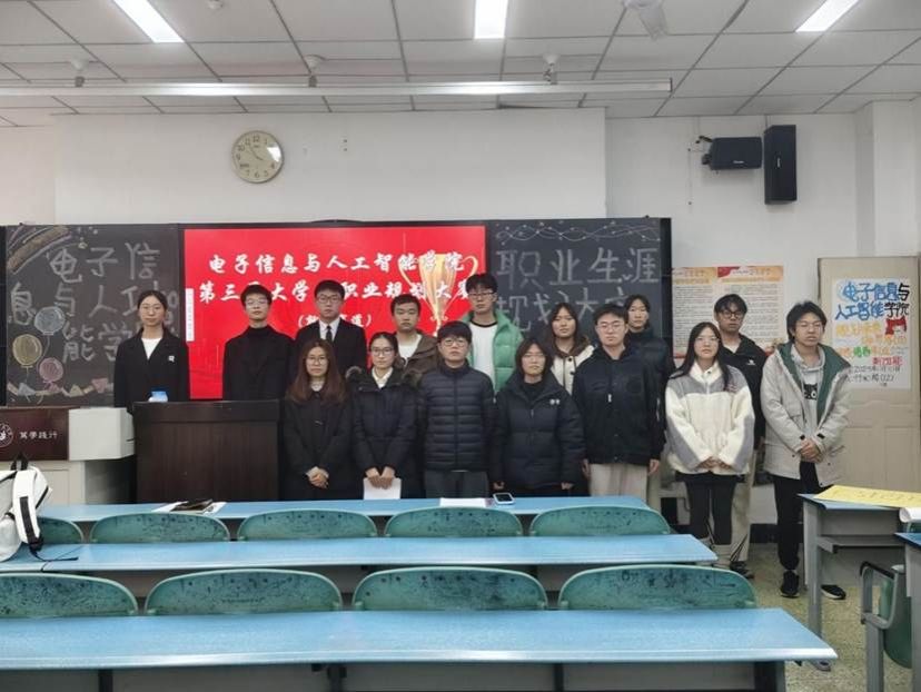 本网讯(文/陈娅、王浩然 图/王小艳、吕培涛)为引导学子明确职业方向,锤炼就业核心竞争力,以赛促学搭建职业发展交流平台,11月30日,电子信息与人工智能学院在行知楼111和112组织开展第三届职业生涯规划大赛。本次活动由AI引航辅导员工作室和学院易班分站共同主办,设成长赛道与就业赛道,覆盖全院各年级学生,辅导员王杰、徐星悦、主席团成员和学院部分同学共同参与。