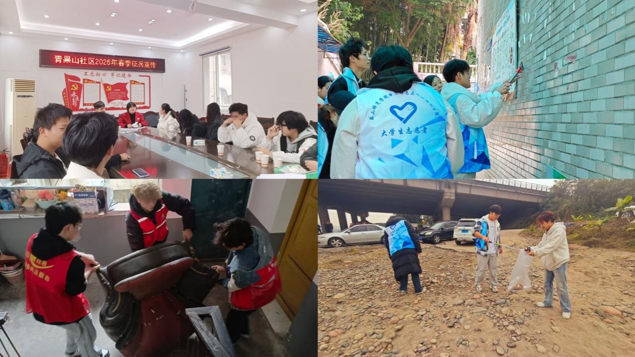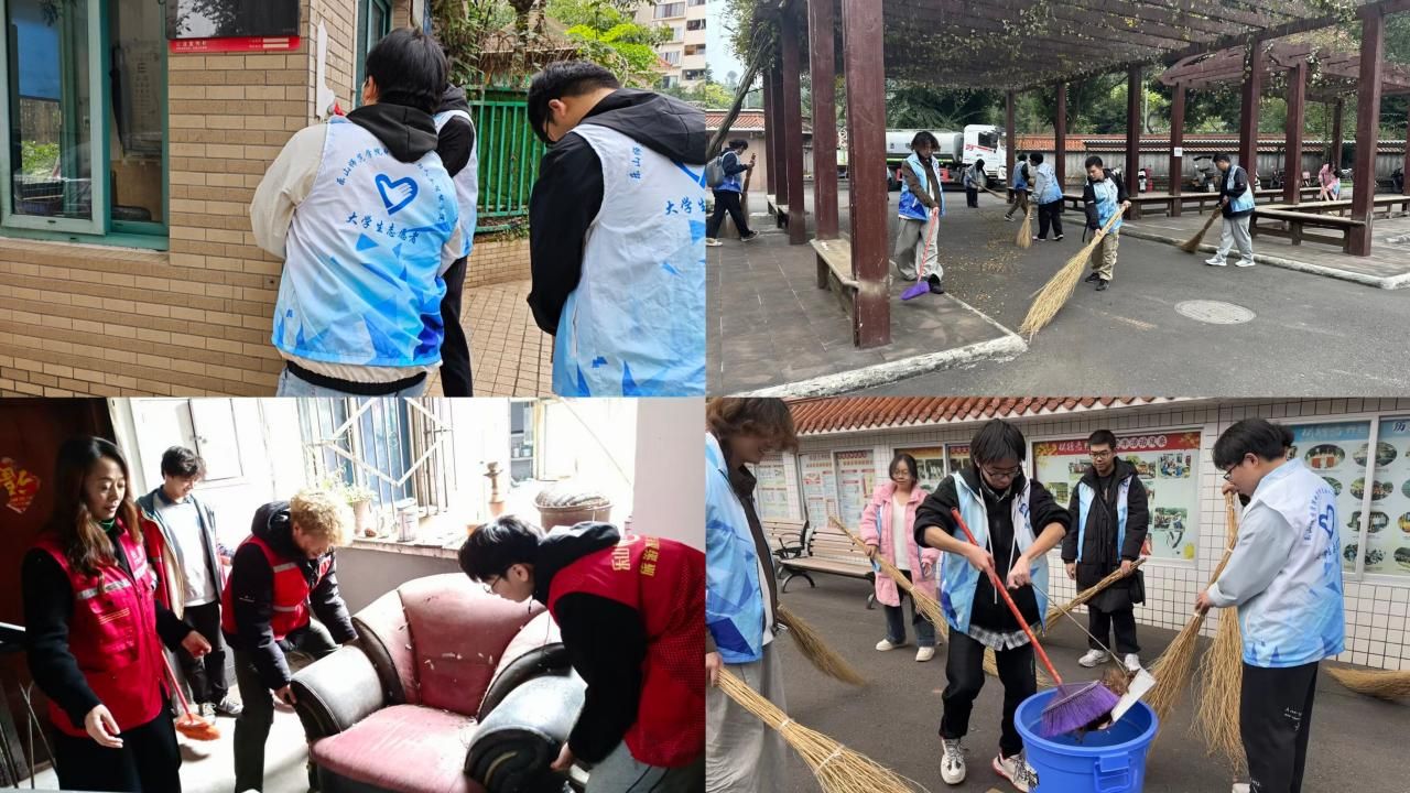 本网讯(文、图/罗雅心)为弘扬“奉献、友爱、互助、进步”的志愿精神,12月4日,电子信息与人工智能学院统筹组织五支志愿服务队,分赴松鹤居养老院及较场坝、青果山、竹公溪、道座庙四大社区,同步开展“志愿聚合力,青春暖人心”志愿服务活动。本次活动由AI引航辅导员工作室与分团委青志中心联合主办,我院蔡贵麟等51名志愿者共同参与。
