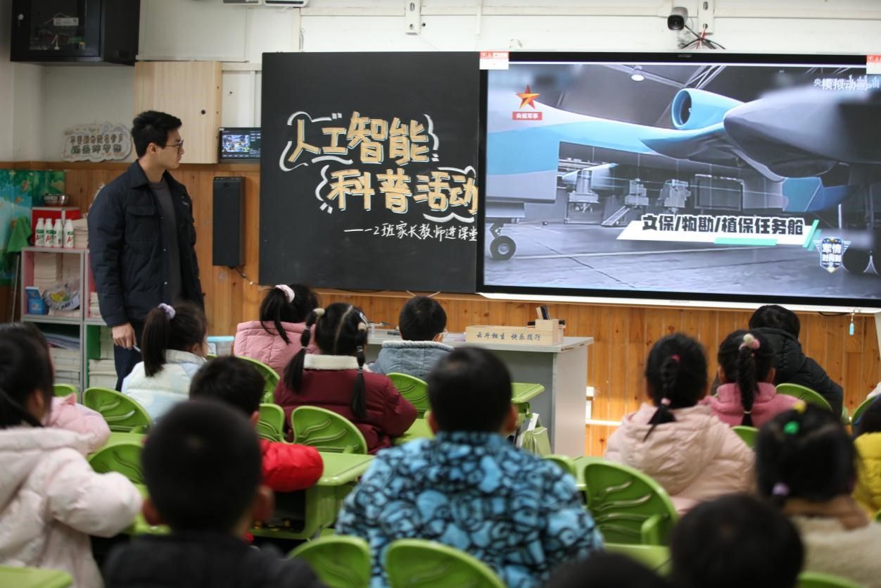 两位青年教师结合一年级学生的认知特点,带来了精心打磨的 PPT 课件,围绕 “神奇的机器狗” 和 “智能的无人机” 两大主题展开讲解。他们摒弃晦涩的专业术语,用 “机器狗为什么会跳舞”“无人机如何找准方向” 等童趣提问切入,搭配生动的动画片段和生活案例,将抽象的人工智能原理转化为看得见、听得懂的趣味知识。课堂上,同学们热情高涨,纷纷举手分享自己的发现与疑问,互动问答环节精彩纷呈,沉浸式的讲解让 AI 知识在轻松交流中深入人心。