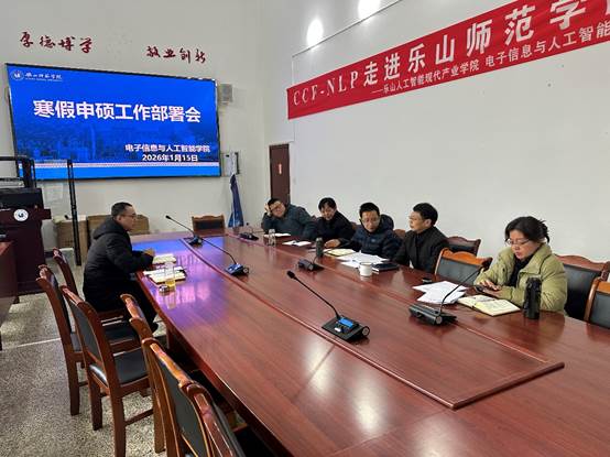 本网讯(文图/胡志惠)1月15日上午,电子信息与人工智能学院在501会议室召开申硕工作部署会,学院领导班子及申硕工作相关人员参会。会议紧扣学校申硕工作总体要求,明确攻坚方向、细化责任分工,全面吹响申硕工作冲刺攻坚的号角。